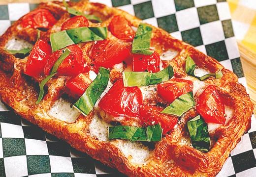 One menu item is a croffle, a croissant dough pressed in a waffle iron.