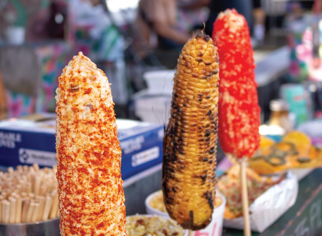 chips.” I always added chili sauce and lime in mine. Yum. Then there’s the infamous elotes , also known as Mexican street corn. I never really bought those but I remember watching the vendor swiftly and expertly slather on mayonnaise and sprinkle chili on the corn cob like they were painting a work of art. They would wait right in