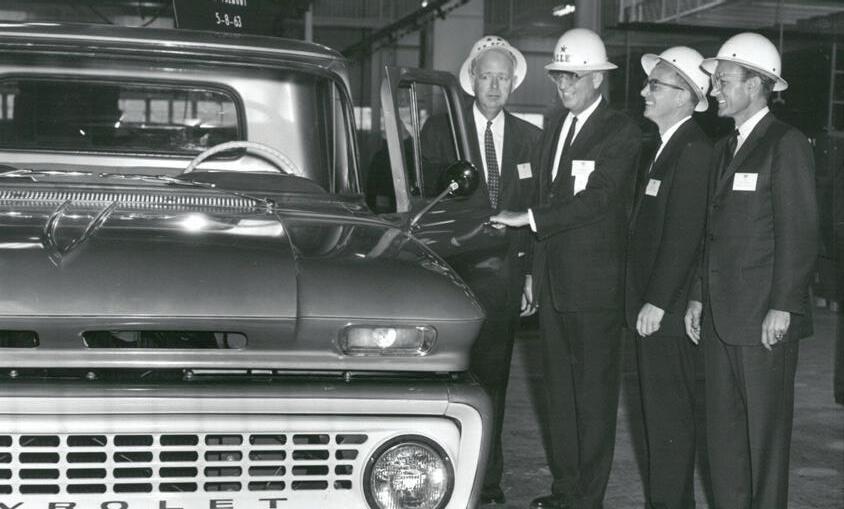 Inside the Fremont Assembly, part of the General Motors Automobile Factory, 1963.