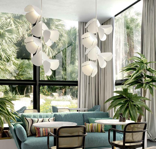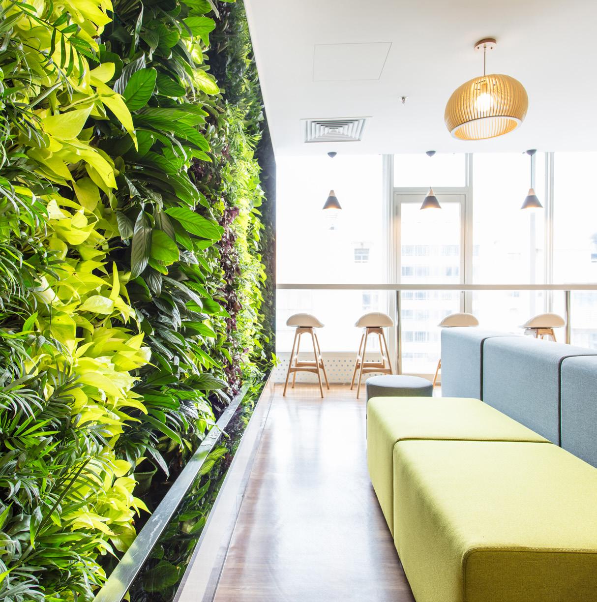 Simple (non-structural options) include a green wall comprising hanging or wall-mounted planters with an assortment of greenery, an outdoor courtyard with plants, trees and a water feature, arranging o ce furniture to work with rather than against the light, and opt for natural over synthetic materials to bring in patterns, shapes, and textures from nature indoors.