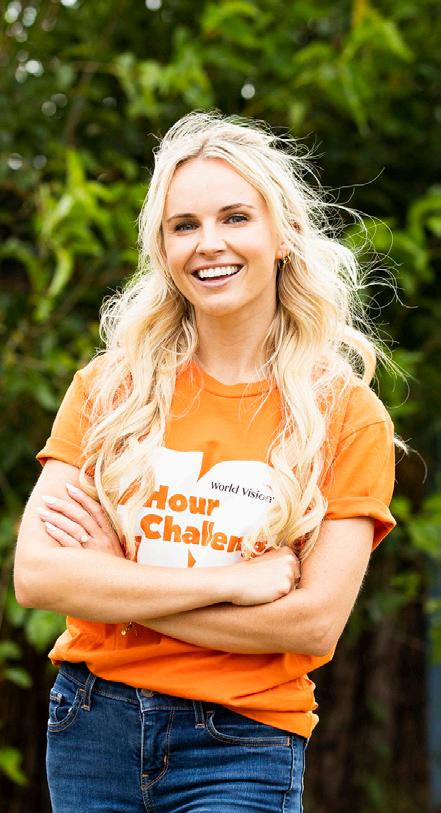 Seeing the di erence World Vision makes, and the influence her career has a orded her, Kim prioritised how she would leave a mark on the world. “You can’t just sit and feel sad and sorry for it. You have to take action. I’m in a really fortunate position to have a platform and I feel a real sense of responsibility to do good with that. Working with World Vision feels like a joy and a dream.”