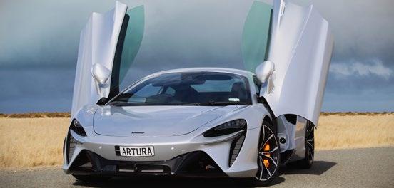 The Artura defaults to electric mode on start up, so instead of the usual supercar growling dawn chorus, you have what Simon and Garfunkel would describe as “the sound of silence”. Slicing quietly through urban Christchurch tra c soon becomes a familiar pastime, much to the surprise of other road users.
