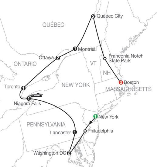 Highlights New York | Philadelphia | Washington DC | Lancaster | Niagara Falls | Toronto | Ottawa | Montreal | Quebec City | Franconia Notch State Park | Boston