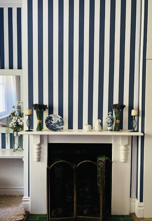 T“Striped wallpapers, richly coloured paint schemes and floor-toceiling velvet drapes combine in a way that is sympathetic to the history of the house.”