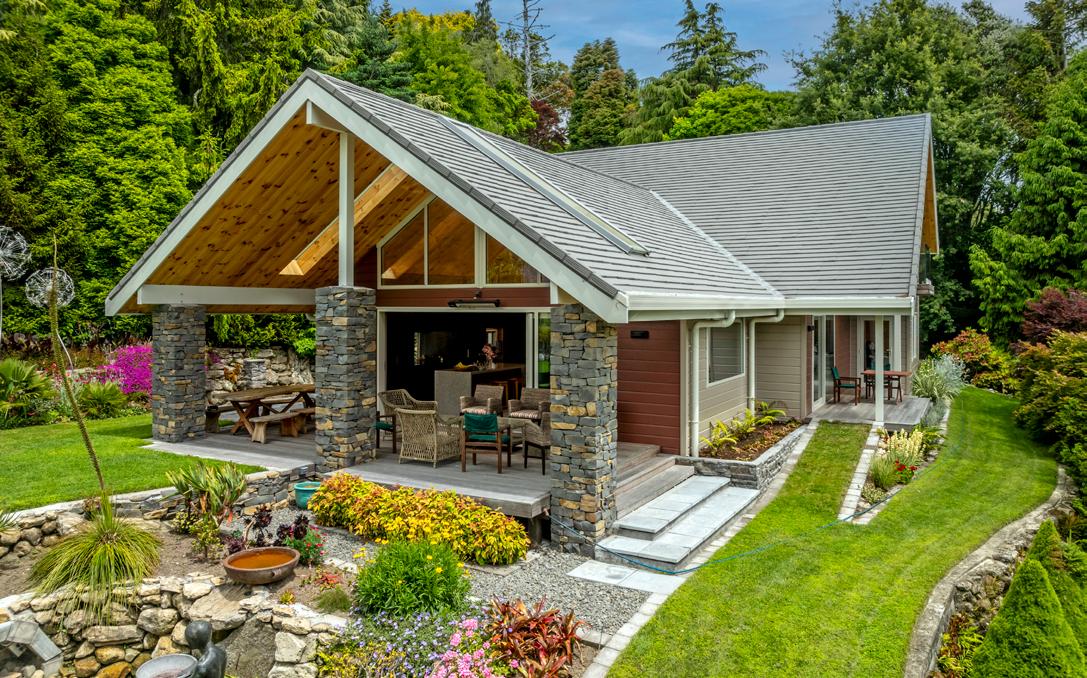 Adjoining the house a large barbecue and outdoor seating area gets plenty of use, particularly in the summer months when the couple eat outside “all the time”.