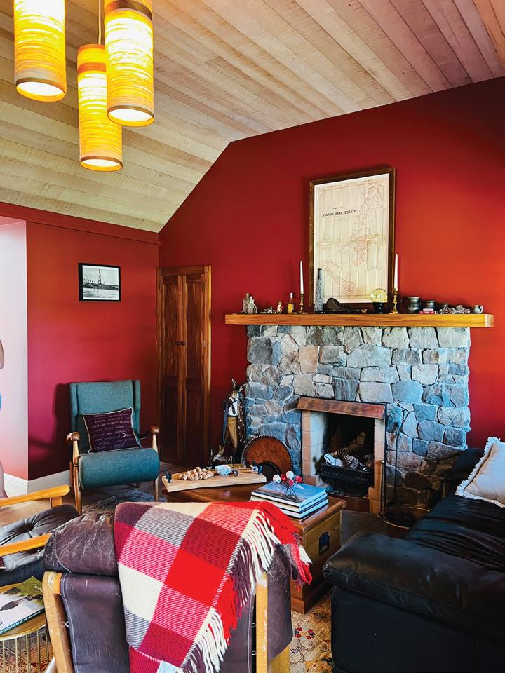 The timber-framed windows in the family bedrooms are all based on the original window design. They were removed, restored where possible, or recreated and then replaced in the cottage. In the whisky room at the entrance to the house, a fireplace has been built with stones from the hills of Station Peak and original wood from the cottage. Where possible the original stone walls of the cottage have been kept in place and in view.