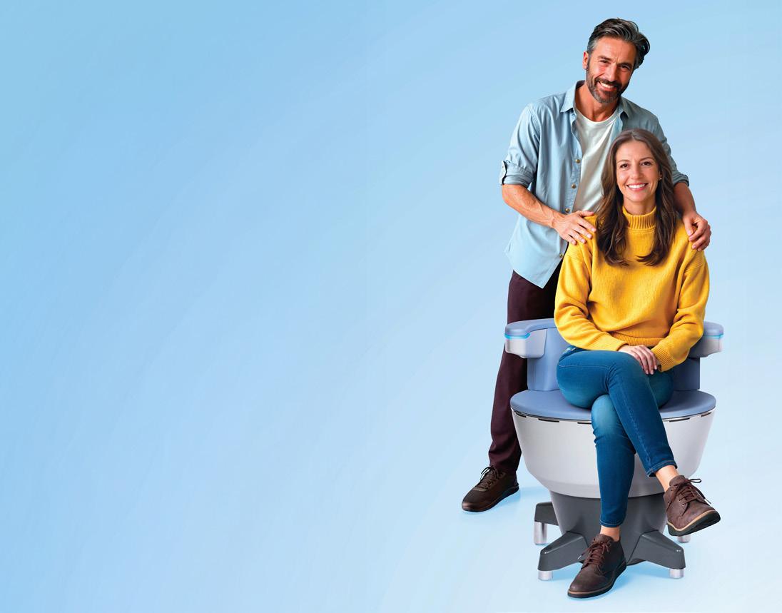 When the engines cut o , the crew unbuckled and floated weightlessly. “It’s like swimming underwater without the water,” he says. “You can easily tumble and float. I needed a few seconds to shift from the adrenaline rush of the ascent phase to the stillness of zero gravity once the booster separated.”