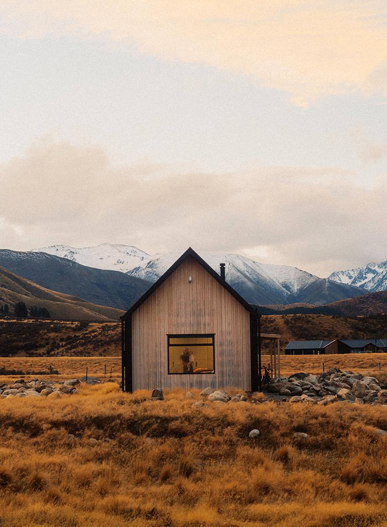 Skylark Cabin is a luxurious, private retreat set in the spectacular Mackenzie Region. Surrounded by majestic mountains and vast skies, this architecturallydesigned cabin o ers stunning views, a soothing outdoor hot tub, and elegant simplicity. Perfect for two, it’s a place to unwind, reconnect, and experience nature’s beauty in comfort, far from the pace of everyday life.