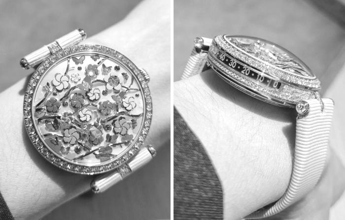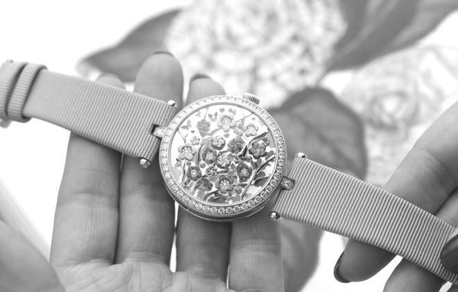 Chiếc đồng hồ Van Cleef & Arpel Heures Florales hiện đangthuhútsựchúýcủakhắpcáctrangmạngxãhội.Thiết kếtáihiệncả1vườnhoa,yêucầungườisửdụngnếumuốn xemgiờhãyđếmsốbônghoanở,vàsốphútđượchiểnthịở cạnhbêncủađồnghồ.Ýtưởngnàymấttới5nămđểrađời, và quả thực nó không khiến người ta thất vọng về sự độc đáo