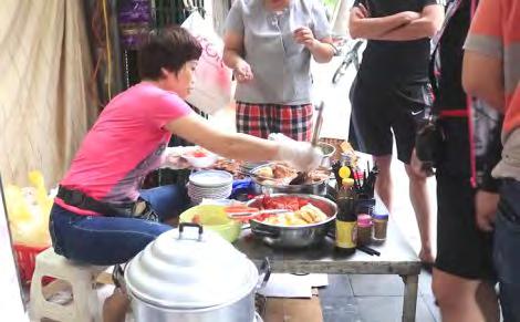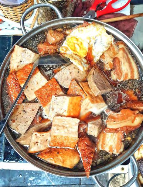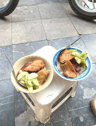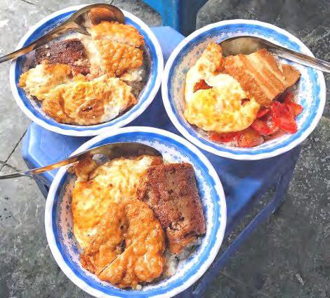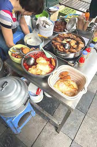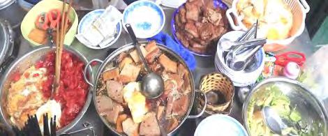 Hàngcủachịchỉcóchiếcbàninoxbàynồi thịtquay,trứngrán,trứngốpla,lạpxưởng, chả…khonhạttrongnồi,cáichõxôivàít ghếnhựađểtạm,thếmàsángnàocũnglàm náonhiệtcảmộtgócphố.