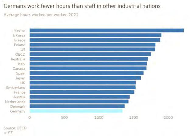 Lực lượng lao động của Đức có số giờ làm ít nhất