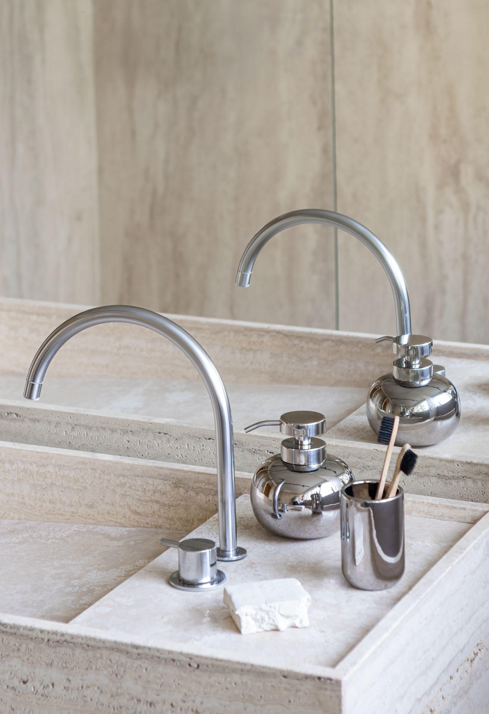 With soft curves and a clean, cool shine, hard metal is graciously shaped into interior pieces that are both timeless and refined. The contrast between organic shapes and solid metal creates an appearance that is understated yet striking.