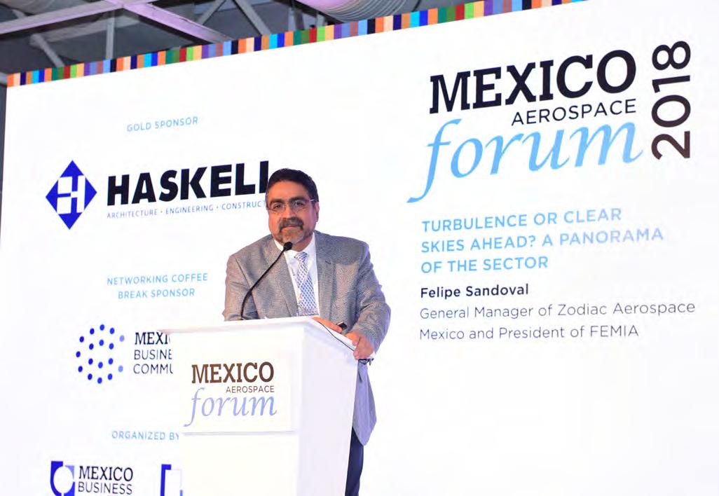 The Mexican aerospace industry has clear skies ahead with a chance of turbulence rooted in letting opportunities pass by, said Felipe Sandoval, General Manager of Safran Seats and Aerosystems Operations and President of FEMIA in the closing presentation of Mexico Aerospace Forum 2018 at Sheraton María Isabel.
