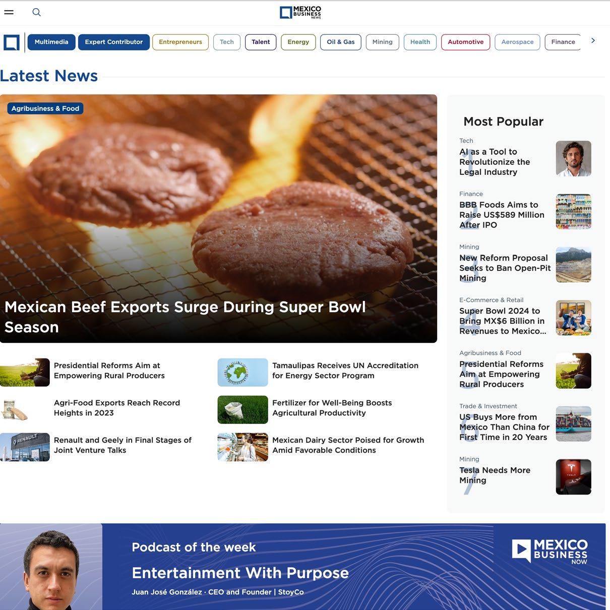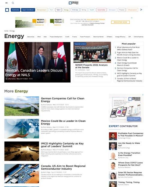 Mexico Business News is Mexico’s leading and fastestgrowing source of first-hand, English-language business information on Mexico. Our unique and reliable content truly sets us apart, attracting a rapidly-growing audience consists of business and political leaders shaping the future of Mexico’s main industries.