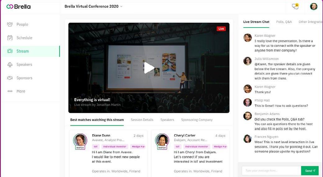 The introduction of the Brella matchmaking platform introduced unprecedented networking opportunities generated by intent-based, AIdriven matchmaking technology. Based on our experience with Brella during Mexico Oil & Gas Summit 2020, we see tremendous opportunities to create additional value for both sponsors and attendees through the optimization of the use Brella at future conference.