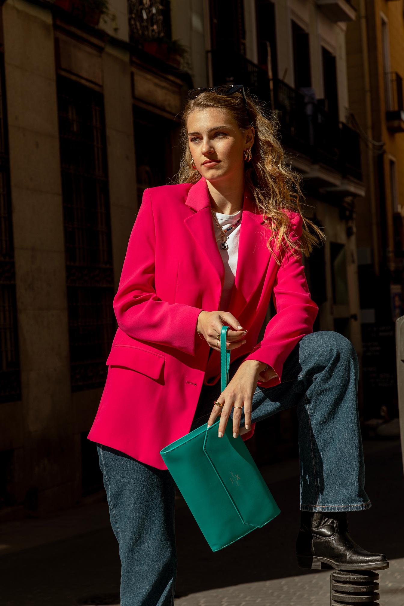 Sin embargo, no todo será rosa sobre rosa La tendencia del Barbiecore, permite combinar colores en bloque, como verdes, naranjas, morados y azules, para lograr contrastes atrevidos. Los estampados también son parte fundamental de esta tendencia. Puedes combinar prendas a rayas, con animal print, cuadros o flores, siempre ajustadas al cuerpo para darle mayor impacto al look.