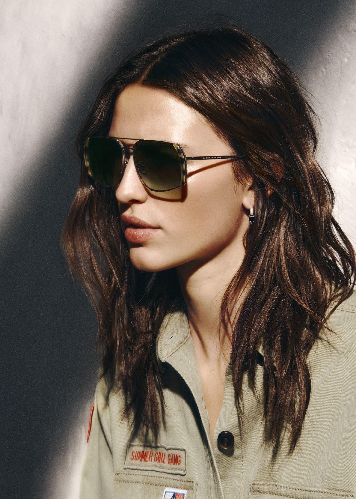 La couleur est présente, tout en restant subtile. Transparents doux, teintes fumées et nuances naturelles chaleureuses alternent avec des accents frais et des dégradés délicats. Les montures métalliques, elles aussi, se renouvellent avec des formes plus épurées et des finitions mates contemporaines.