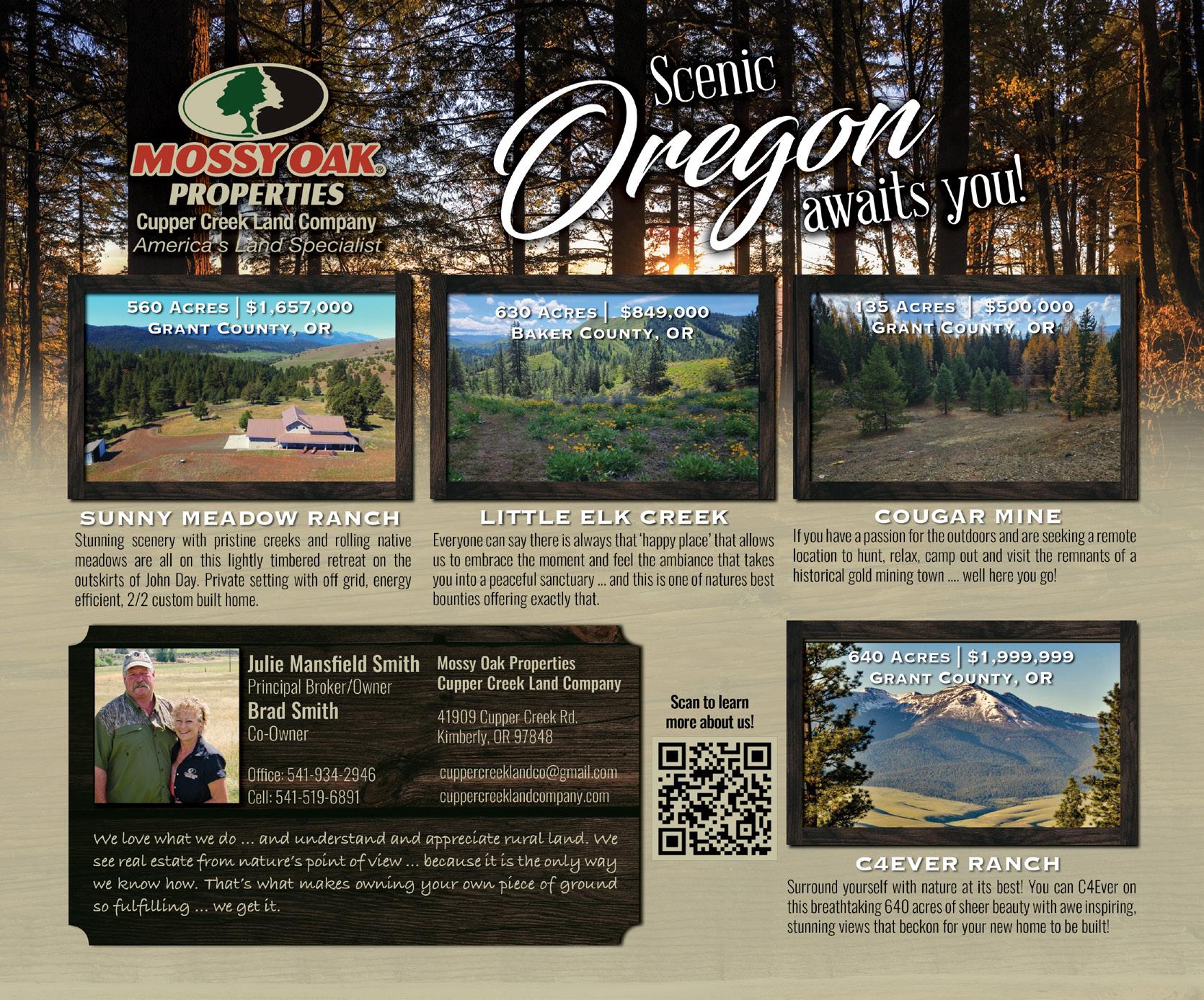 Recreational paradise offering natural beauty, astounding views, development potential, plentiful wildlife, desirable water characteristics and complete privacy. 40,040± acres of timbered high country borders the Ochoco National Forest. Heavily timbered mountain ridges surrounded by lush meadows, 65 year-round springs, 19 miles of live water creeks, streams, ponds and sub-irrigated meadows. Contact Robb Van Pelt.