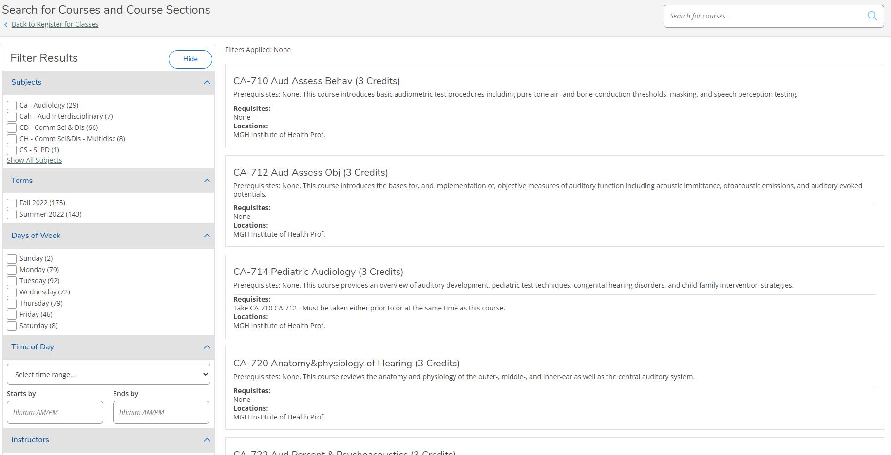 6) You will be directed to the screen shown below. You have different options for searching for classes. You can filter by Term, Subject etc…