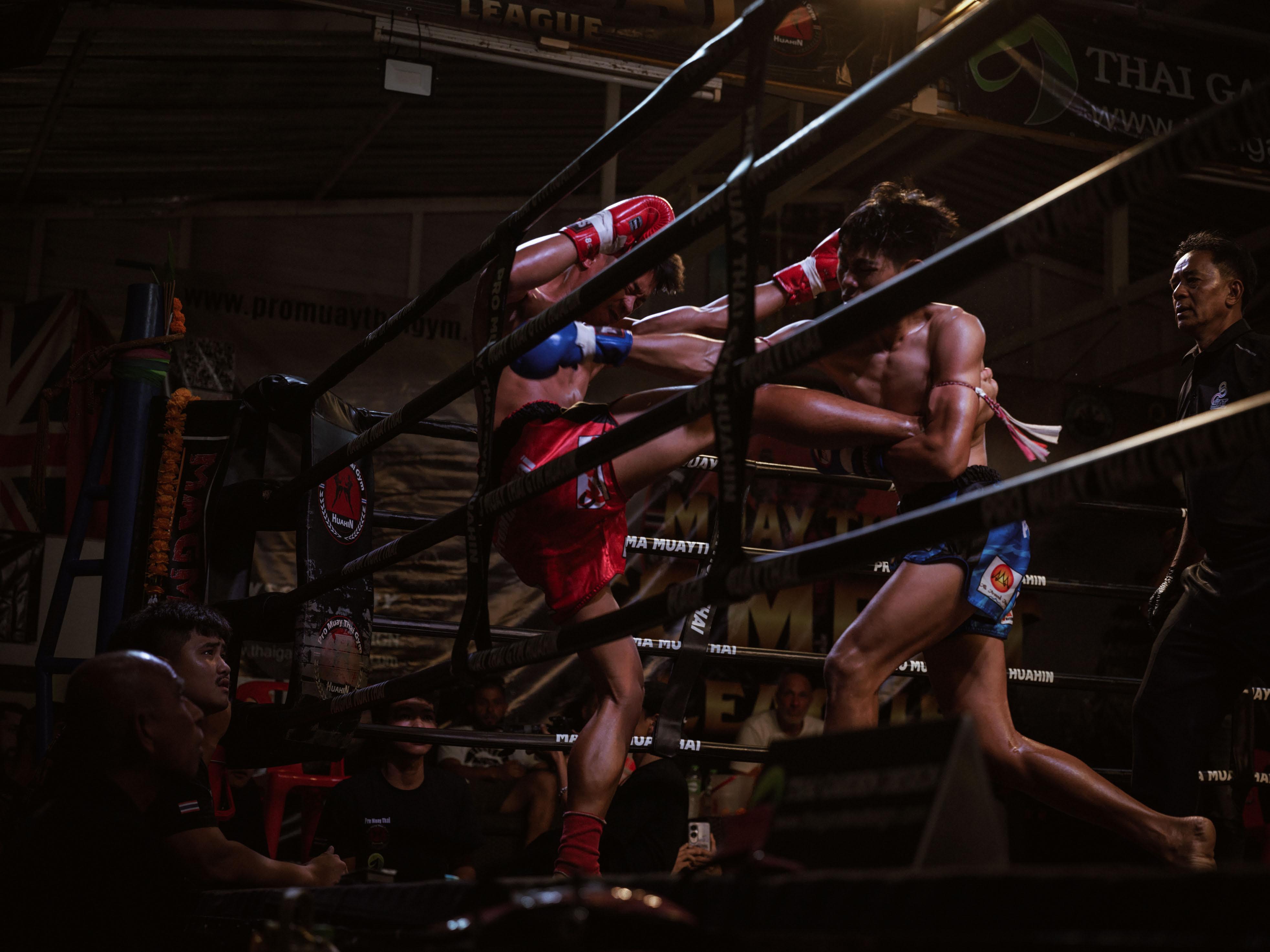 Es wird immer wieder gesagt, die Mittelformat Fotografie sei zu langsam, doch ich habe die Gelegenheit genutzt, einen Thai-Boxkampf zu fotografieren. Es war erstaunlich, wie präzise und zuverlässig der Autofokus den Bewegungen folgen konnte. Ich war überrascht, wie gut sich die Kamera auch für schnelle, dynamische Situationen eignet.