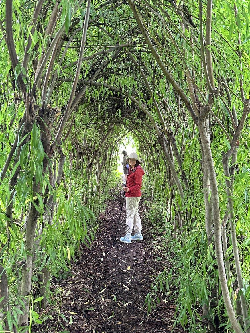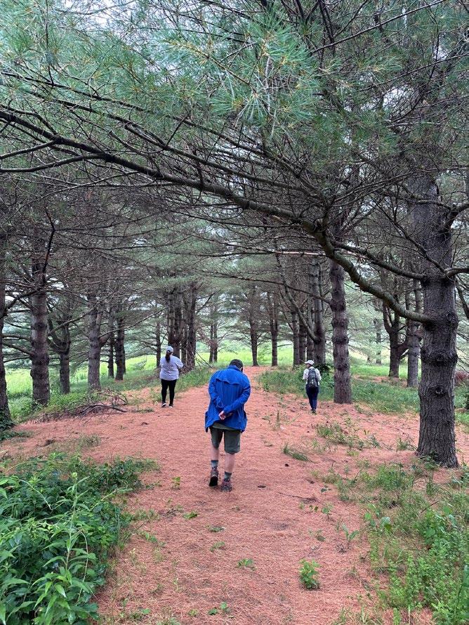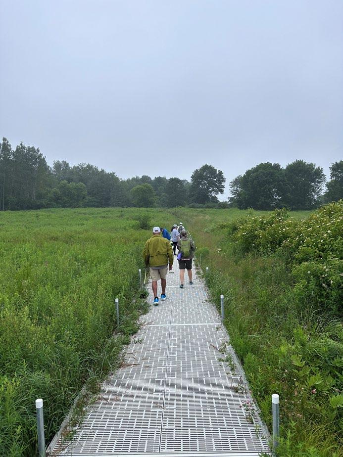 smell and touch. We experienced the extensive grounds via trails through mature woods, gardens, grassy fields, through architectural features, and on elevated walkways over wetlands. The day concluded with the sharing of a cup of tea, brought by our guide, with thanks given for the beautiful day and the time together to recharge.