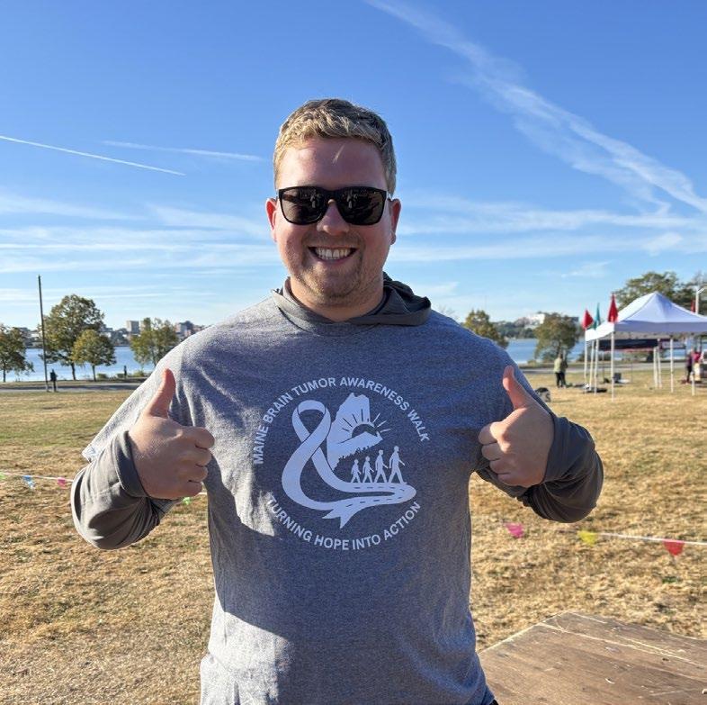 Above: Brain tumor survivor and event logo designer, Tom McGowan; At right: Maine Medical Center R6 staff members from left: Faith Musk, Delaney Loring, and JJ Neumann