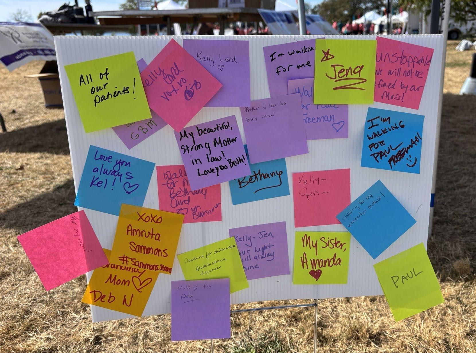 Above: Dr. Lu Emerson, left, and neuronavigator and event coordinator Sara Cox, RN, right. At left: One of four message boards for participants to write the inspiration for their walk.