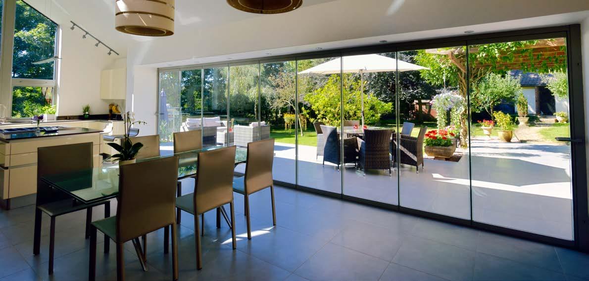 many other double-glazing companies. The bi-folding doors are designed to ft together without the obstructions of a frame, I.E no vertical mullions, allowing more light in and with a U-value of 1.0.