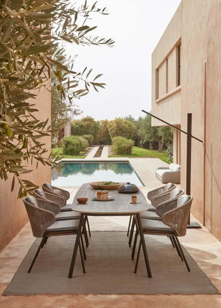 The Galea family, comprised of exquisite and highly comfortable designs like an armchair, a sofa, a daybed, and a chaise lounge are a timeless outdoor series made to be durable and weatherresistant, brought to form through a combination of traditional weaving techniques and metalwork from Indonesia and Portugal. Benefiting from a neutral color scheme, these have their enhanced aesthetic through the use of materials such