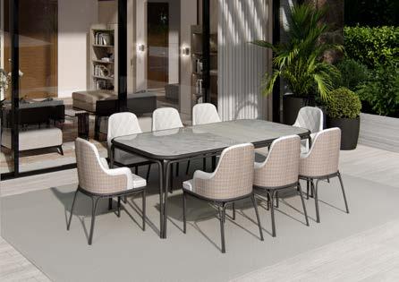 as stainless steel, powder coating, and synthetic fiber. Each one of these furniture designs is bound to bring an extra layer of style and refinement, thus becoming the idyllic pieces to rest while sunbathing or standing by a fire pit.