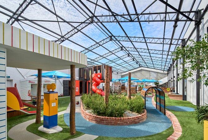 A series of green pedestrian corridors connect Morris Moor to the surrounding context, leading locals to a bustling hospitality precinct, around which office spaces, childcare, and artisan and e-commerce studios are centered. Through the formation of this core, and concealing car parking within an existing warehouse, Genton created a highly active pedestrian zone within a lowdensity neighborhood, strengthening the social fabric of the local community.