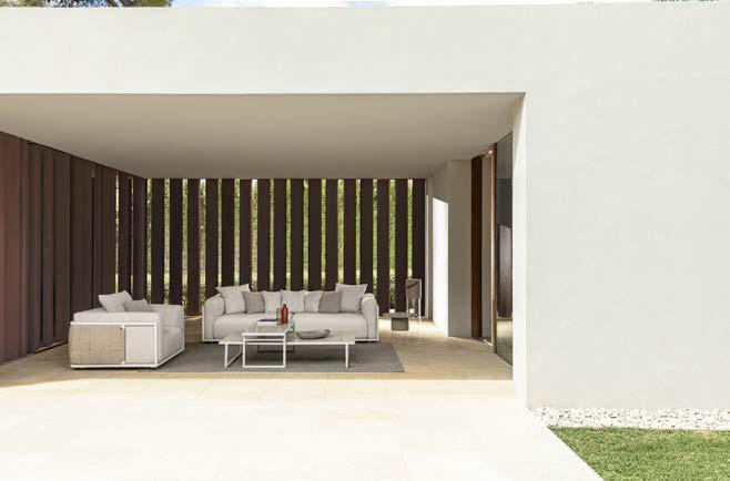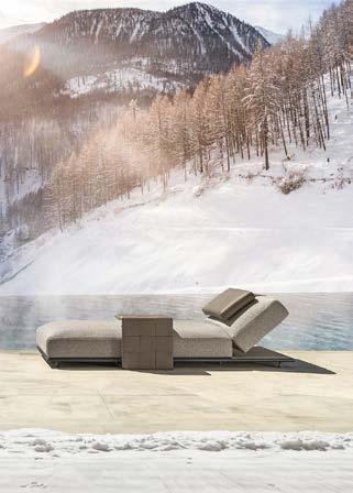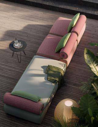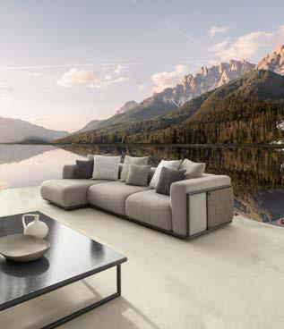 New also the bouclé fabric with which the large cushions are covered and the Silver color of the eco-leather that makes up the back and armrests of the sofas, and the furnishing accessories of the collection, such as storage cubes and side tables. The two shades of white are glacial and refined, making them the perfect base for playing with the saturated textures inspired by Missonian furniture cushions, which warm up the whole and communicate with the surrounding natural environment, for a character and multi-use outdoormaterial that juggles between shapes and colors, confirming absolute novelty of the outdoor panorama.