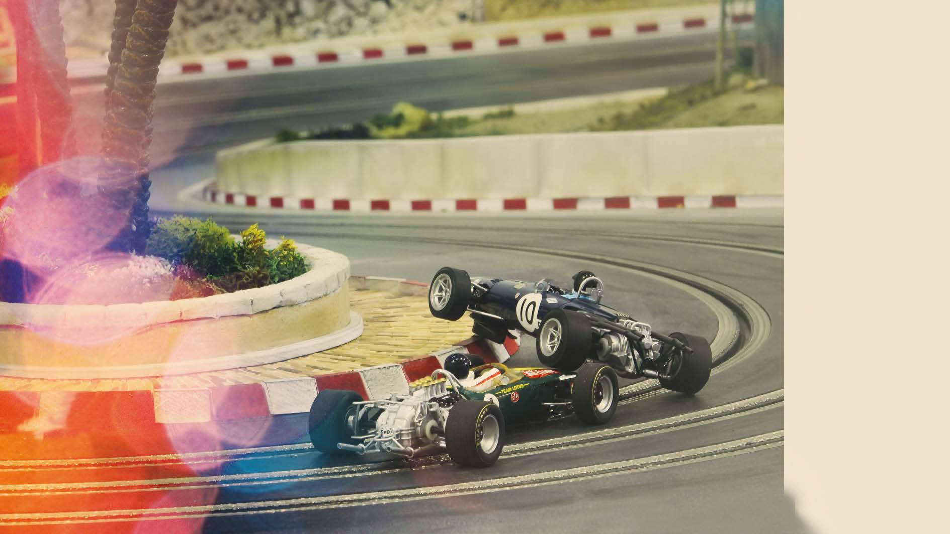 We cra the world's finest custom slot car raceways, meticulously designed for private collections by our visionary founder and lead artist, David Bea ie. Inspired by legendary circuits from around the world, Slot Mods creates ﹕ scale MegaTracks for vintage open-wheel racers, exotic prototypes, GT sports cars, and stock cars. Every inch of these raceways, from the corkscrews to the chicanes, from the paddocks to the pits, right down to the mounting bolts on the aluminum guardrails, is handmade with incredible precision and built to withstand years of intense racing action.