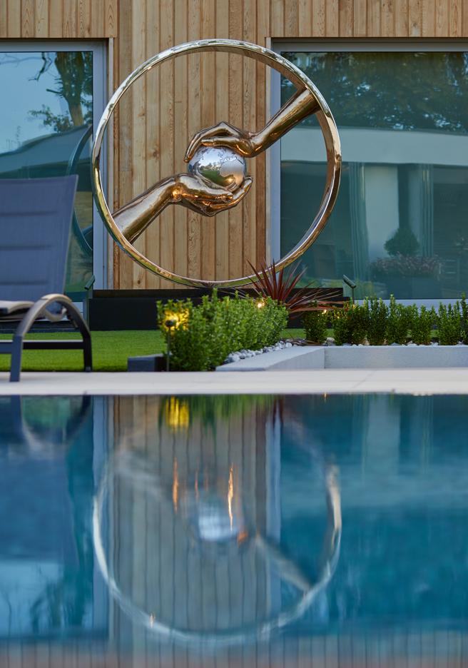 water feature has one material but the clever choice of finish changes how it reacts when touched by water hence bringing it to life.