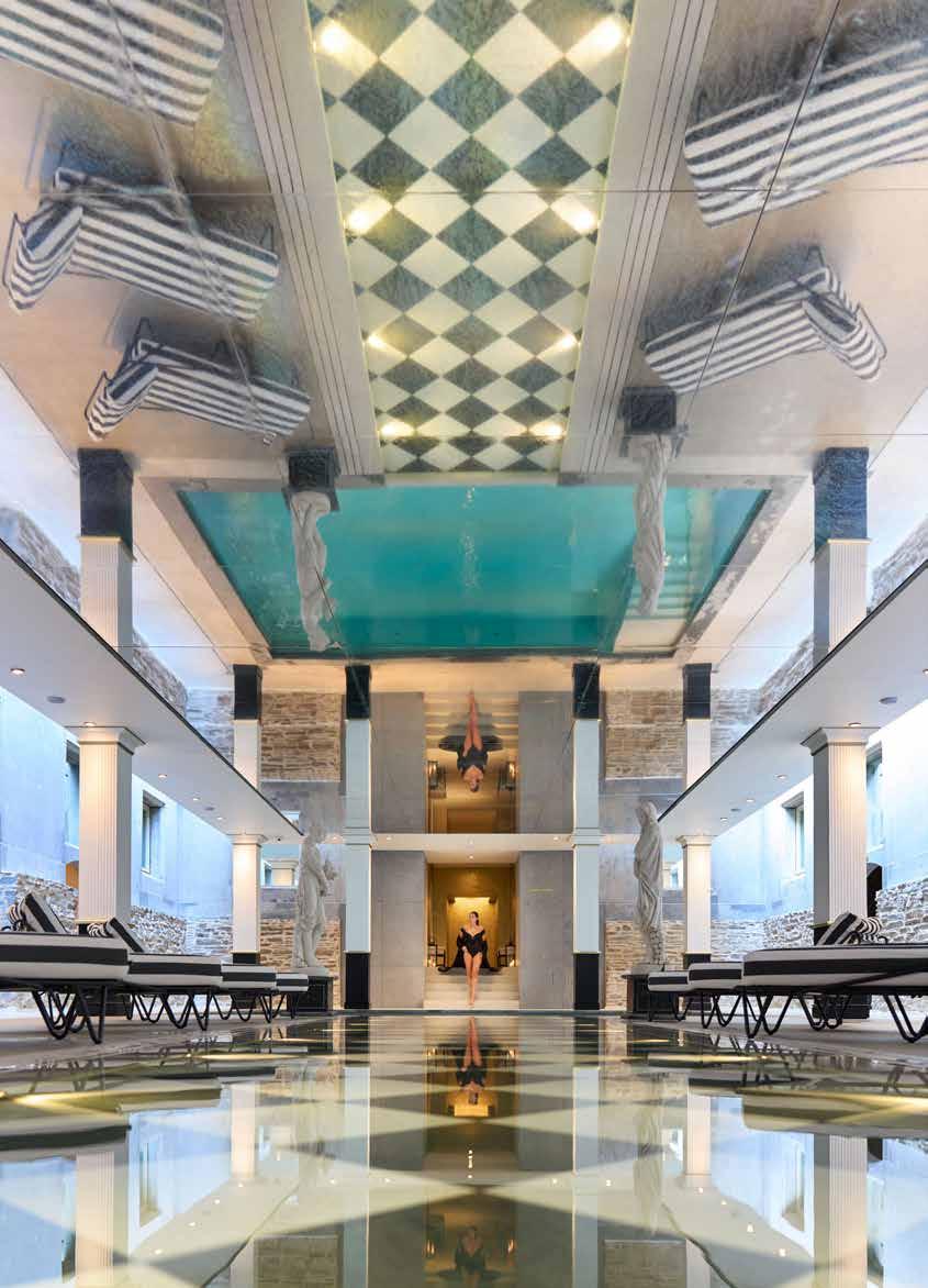 La rénovation a tiré parti de l’histoire du lieu, jouant avec des fresques artistiques, des matières nobles et des perspectives lumineuses. Mais c’est l’élément originel de Spa — l’eau — qui reste la véritable âme de l’hôtel. Elle circule comme une mémoire souterraine, inspirant un parcours où tradition et modernité ne cessent de converser : bassins de détente, sauna finlandais, bain romain, mur de sel, fontaine de glace, cabines de soins, espace fitness ultramoderne... Une scénographie subtile où le corps trouve du réconfort dans chaque zone.