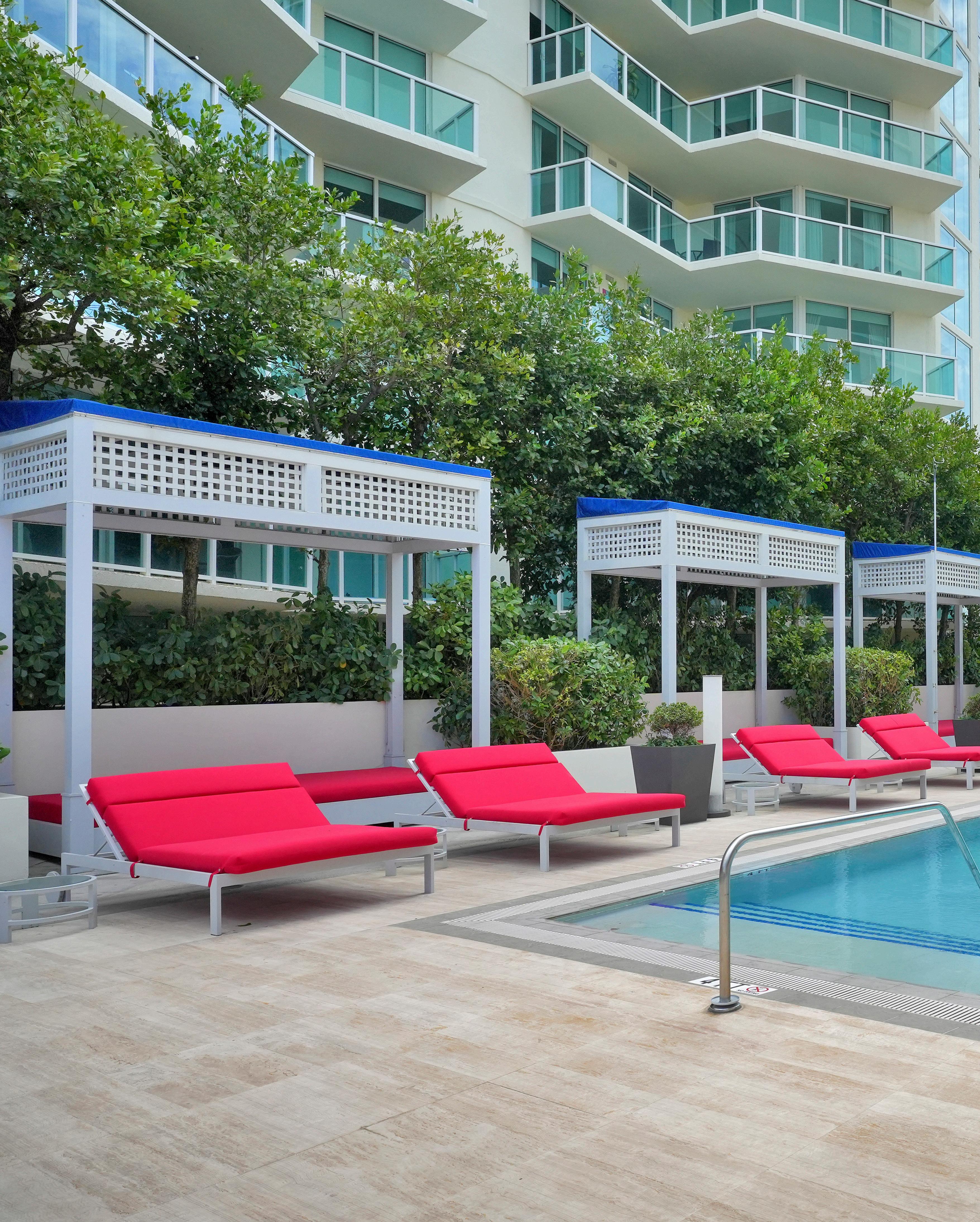 St Tropez features 280 condo residences comprised of 2-bedrooms to 4-bedrooms floor plans ranging in size from 1,229 to 3,020 interior square feet. The units at St Tropez feature only 6 residences per floor, oversized raised-panel entry doors, floor-to-ceiling high-impact windows, and wraparound balconies with glass and metal railings. St. Tropez also features Italian wood kitchens with granite countertops, stainless steel appliances, in-unit large washer and dryer, exotic stone floors, and an oversized free-standing tub with