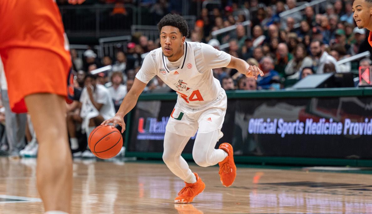 Up 38-34 at halftime, the Orange quickly extended their lead to a game-high 55-44 with just under 15 minutes to go in the second half after Jesse Edwards slammed a onehanded dunk. The ‘Canes had no answer for the 6-foot-11 center all night, who fnished with 25 points and 11 rebounds, both team-highs.