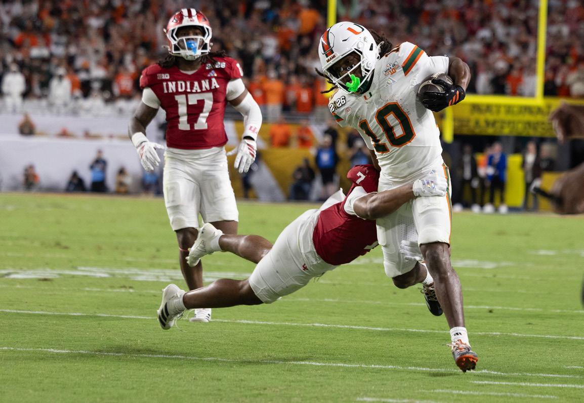 history. Starting at their own 25, the Hurricanes made their way down to Indiana’s 41-yard line. On first down, Miami quarterback Carson Beck looked left, looking for Keelan Marion.