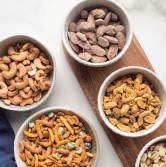 This gourmet nut gift set features six delicious 4-oz bags of premium, small-batch flavored nuts, including Salted Cashews, Honey Sea Salt Almonds, and Coconut Curry Peanuts. With over 1.5 pounds of savory, sweet, and spicy goodness, this snack collection makes a unique and thoughtful gift for men or women.