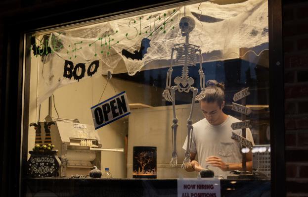 THURSDAY, OCTOBER 27, 2022 photo story 14 THE FRONT WINDOW OF BRUNO’S PIZZA IS ALREADY GEARED UP FOR MONDAY.