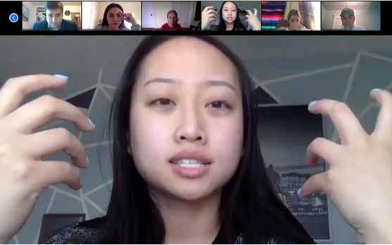 Students met in group chats on Zoom with Oakenfull to continue to deep-dive into complex marketing concepts, discuss their progress with the projects are going, ask questions, and made periodic practice presentations, which required some coordination among the group members located states apart. They also checked-in virtually with the client team once a week to simulate a real-world client/vendor relationship.