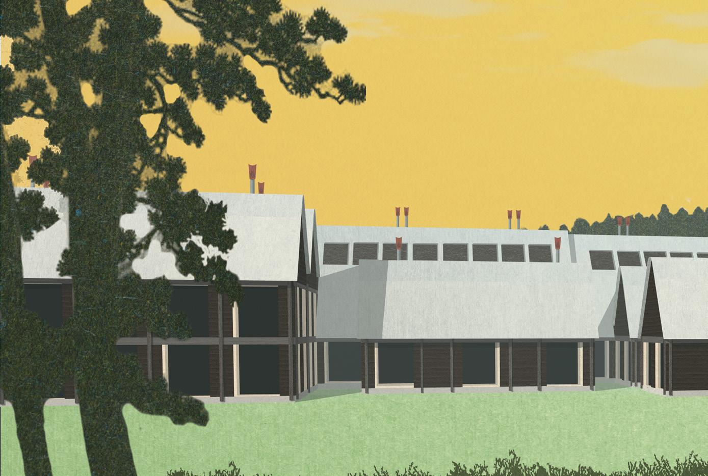 A central agricultural research center and school was proposed to combat the effects of urbanization through training of a new generation of agricultural professionals. The facility would also provide essential senior care and community resources for the surrounding aging community. Urahoro (pop ~5,000) was chosen as the optimal location for the facility due to its central geographic location, access to highspeed rail transportation, and smaller scale crop fields, which could be more readily integrated into a research program.
