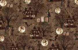 Dare to enter Nightmare at Halloween, a spine-tingling collection of wickedly fun print fabrics! Cackling witches stir bubbling cauldrons beneath gnarled, spooky trees, while flocks of screeching bats dance across moonlit skies. Haunted houses loom in eerie silence, their windows aglow with ghostly light, as creepy-faced pumpkins grin from shadowy corners. Each fabric tells a tale from the haunted night, printed with screams and style. Whether you’re crafting costumes, quilts, or chilling décor, these prints will cast a delightful spell on every project. Beware… once you touch them, you might never sleep again. Happy haunting—if you dare!