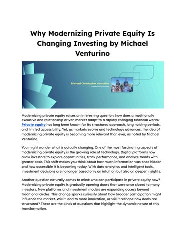 Michael Christopher Venturino is a financial professional, private equity founder, and family man living in New York. With over two decades of experience in mortgage lending, brokerage, and private equity, he has dedicated his career to connecting individual investors with opportunities in the private market. As the founder of HLV Ventures, he focuses on practical strategies that prioritize long-term value. Known for his honest communication and steady leadership, he has built lasting relationships based on trust and performance. Michael was raised by his parents, Linda and Felix, on May 31, 1986, in Long Island, New York. During high school, he played football, wrestled, and participated in hockey, which helped him develop discipline, focus, and teamwork. At 17, he entered the mortgage industry, gaining early insight into lending and client needs. By 18, he had moved into his apartment near his hometown, marking the beginning of a path of independence and responsibility. These early years gave him a deeper understanding of how financial decisions impact individuals and families. As his career progressed, he earned his Series 7 license, allowing him to expand into more advanced investment areas. He became a top producer at two broker-dealer firms in New York, known for his strong work ethic and client-focused mindset. In November 2022, he founded HLV Ventures, based in Hauppauge, to help accredited investors access pre-IPO and secondary market opportunities. The firm uses a straightforward, step-by-step process to ensure clients understand each opportunity and meet regulatory standards. Michael Venturino is committed to integrity, transparency, and education in every client interaction. He supports charitable efforts, including donations to his church and St. Jude’s Children’s Research Hospital. He enjoys spending time with his wife and two sons, staying active through golf, fitness, and pickleball.