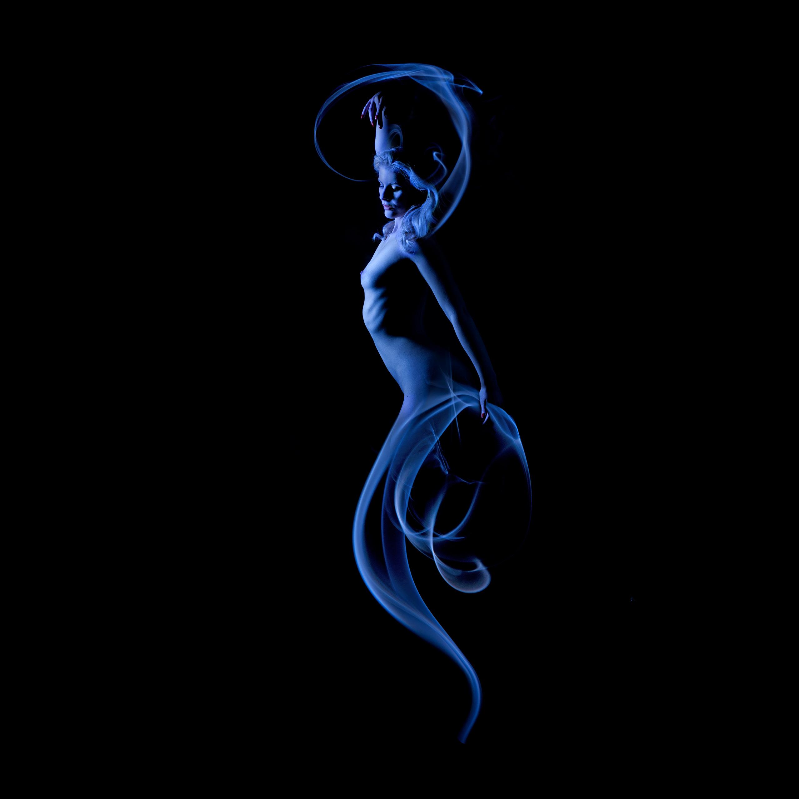 The smoke element of these images is a photographic image. Its randomness and unpredictability made working with this subject fascinating and beguiling.