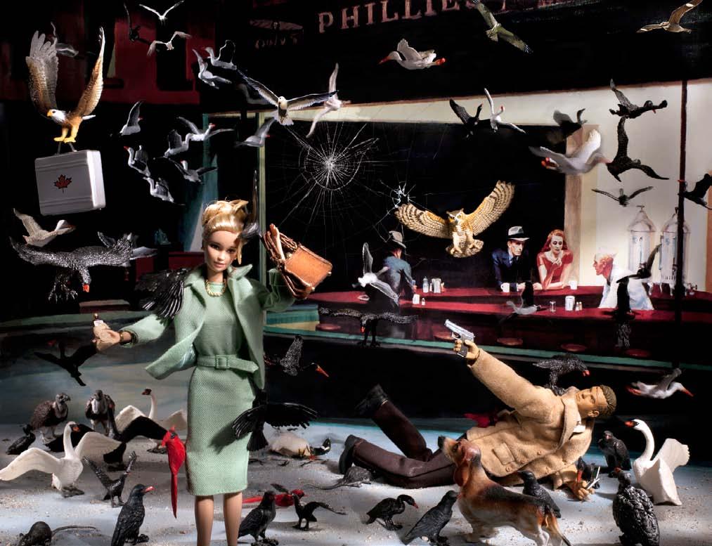 Can Special Agent Jack Bauer, played by Canadian actor Kiefer Sutherland, save the briefcase of Canadian secrets from the American bald eagle? Why are the Canadian secrets more important than saving Tippi Hedren/Barbie in Thorneycroft’s mash-up of Edward Hopper’s painting Nighthawks (1942) and Director Alfred Hitchcock’s film The Birds (1963)?