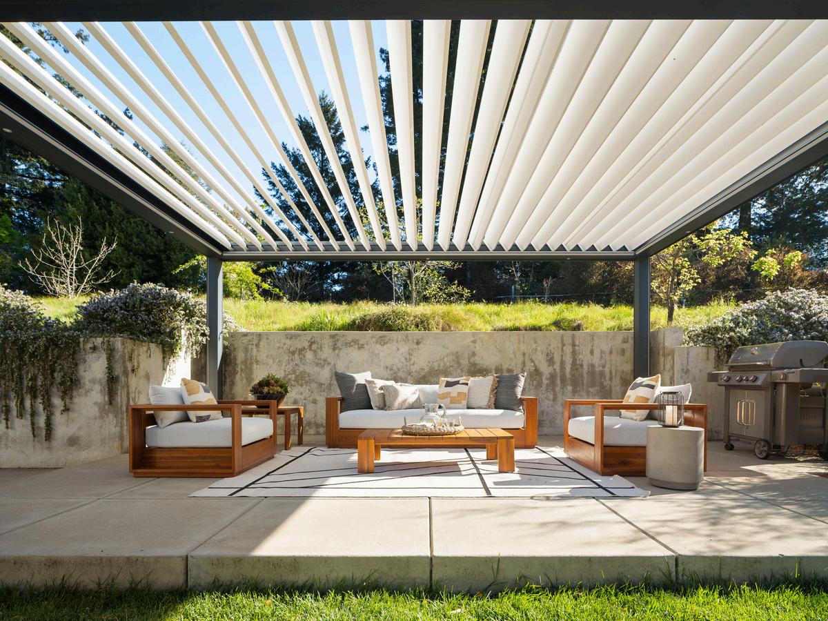 B e n e a t h t h e p e r g o l a , f r i e n d s a n d f a m i l y c a n g a t h e r f o r o u t d o o r d i n i n g a n d e v e n i n g