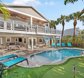 Swaying palms and gentle sea breezes set the scene at Luxe Island Escape, a three-story coastal retreat on Anna Maria Island, offered fully furnished and currently operating as a successful vacation rental. The heated pool, spa, and rooftop deck with captivating Gulf and bay views create an unforgettable setting for sunset gatherings and starlit evenings. Just a short stroll from iconic Bean Point, this inviting home blends style, comfort, and an enviable island lifestyle.