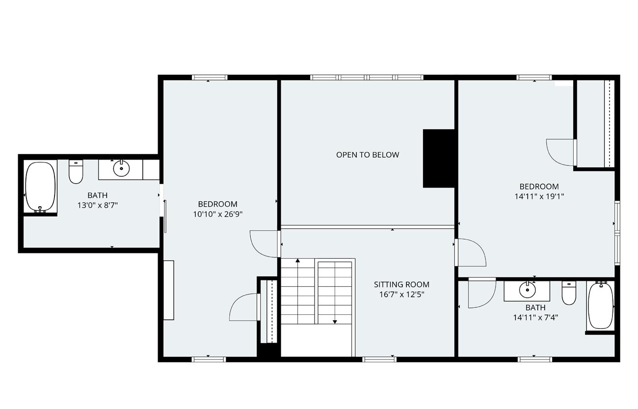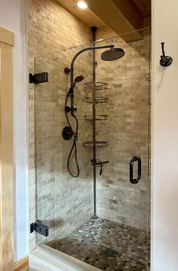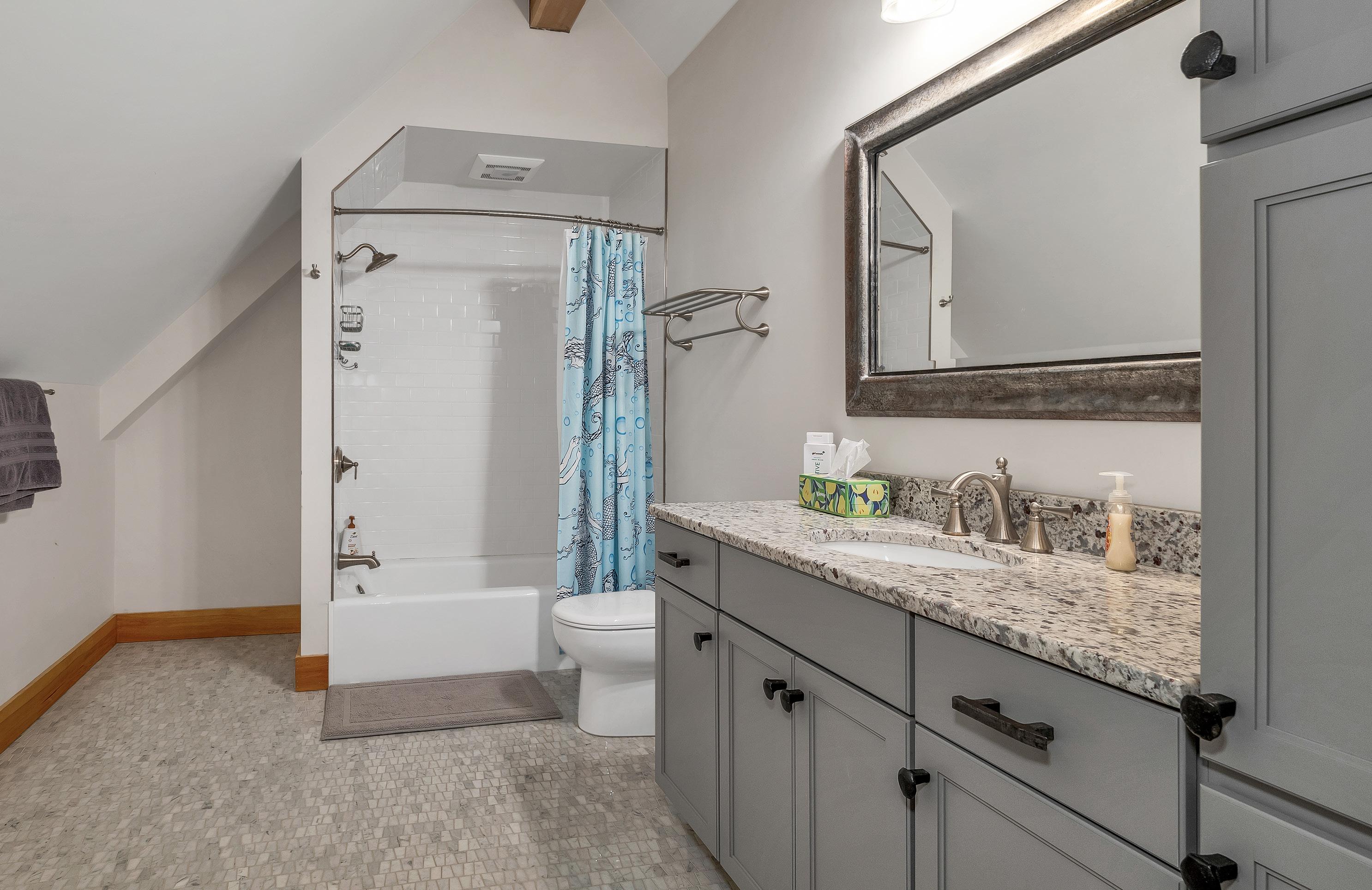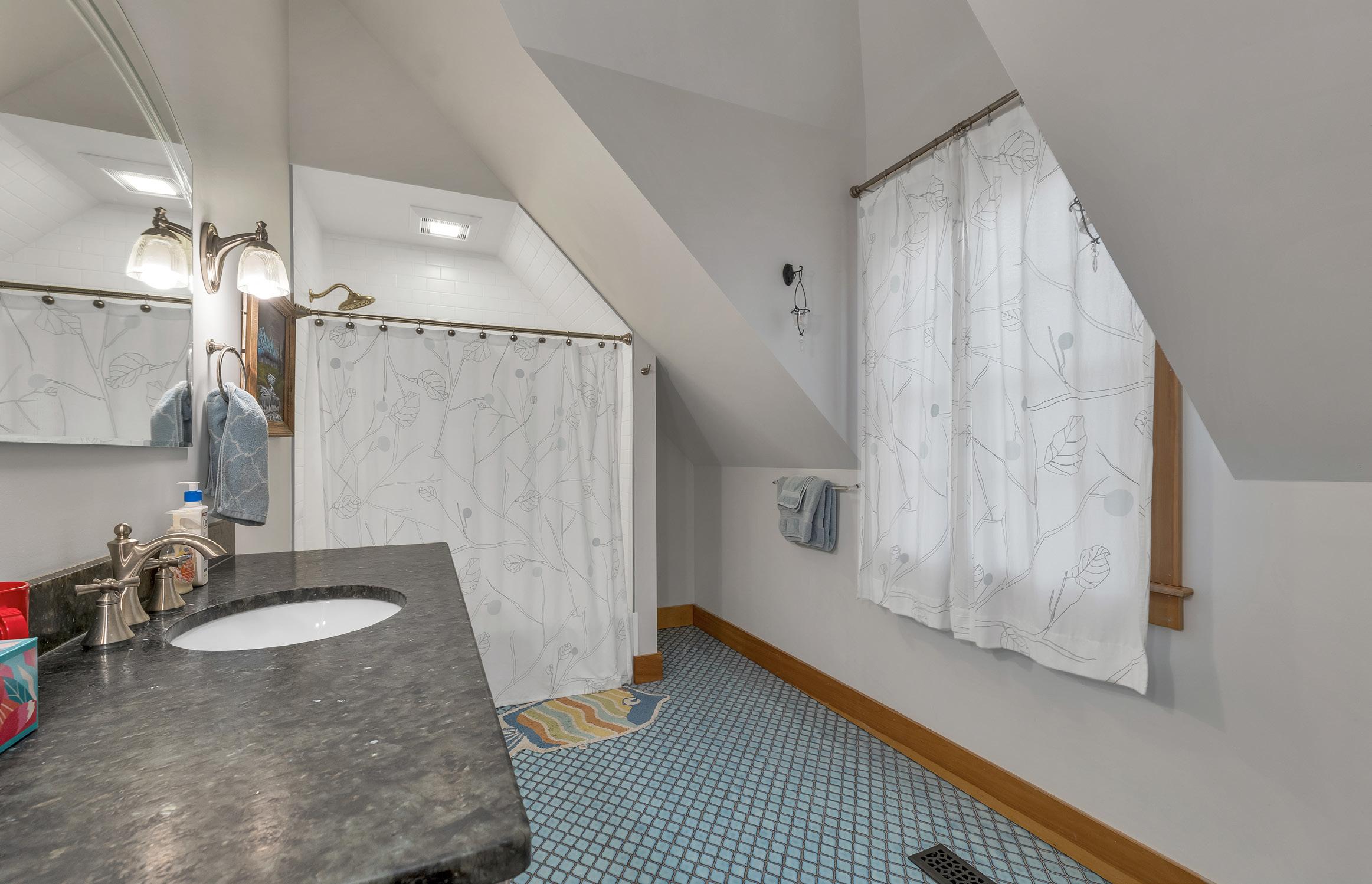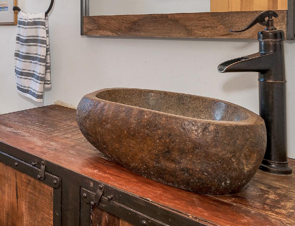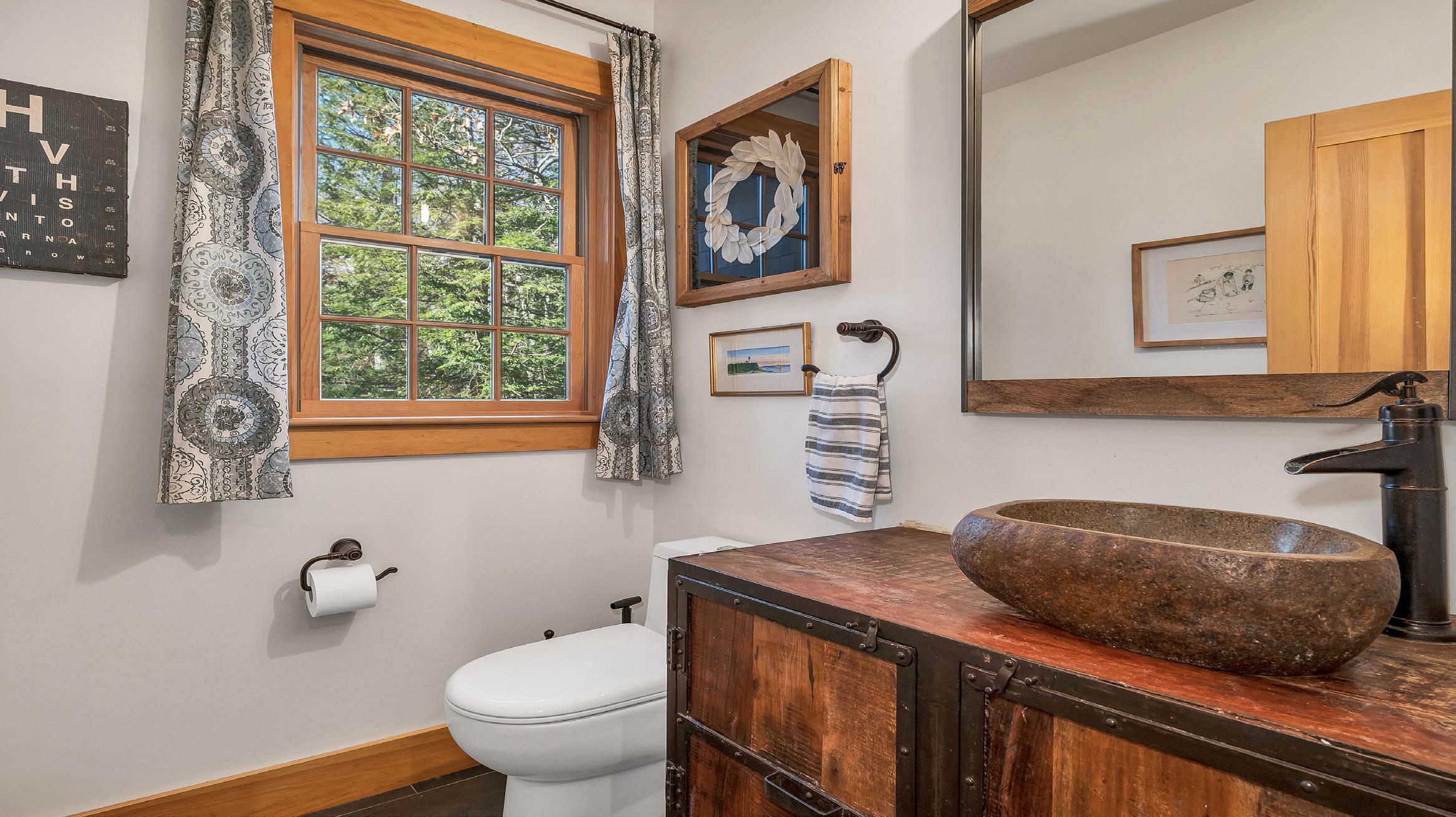 • Upper level “Grey Suite” with large en suite bathroom. Lake views, sliding rustic barn door. Granite Vanity in full bath. 3 beds including bunk bed