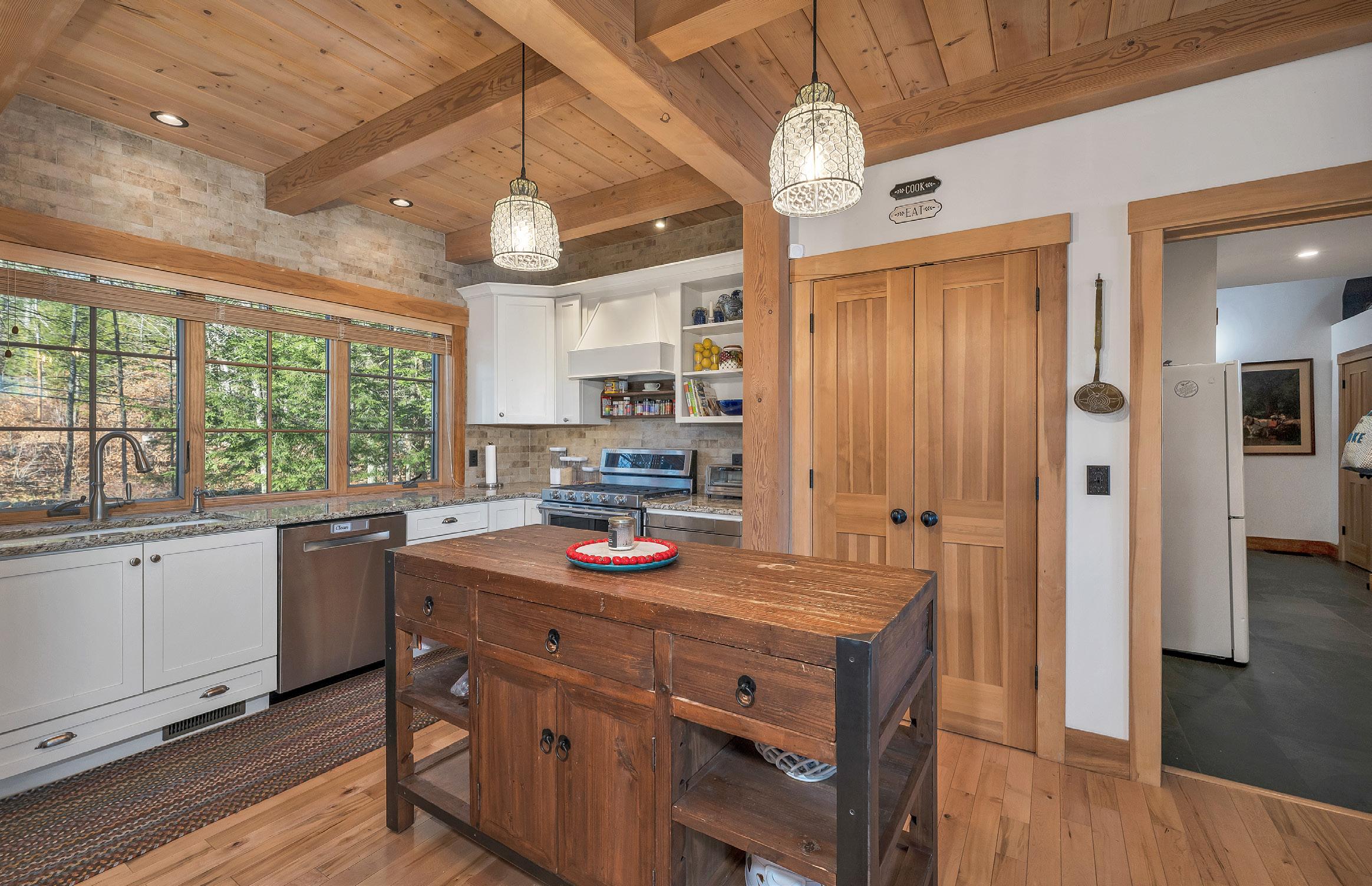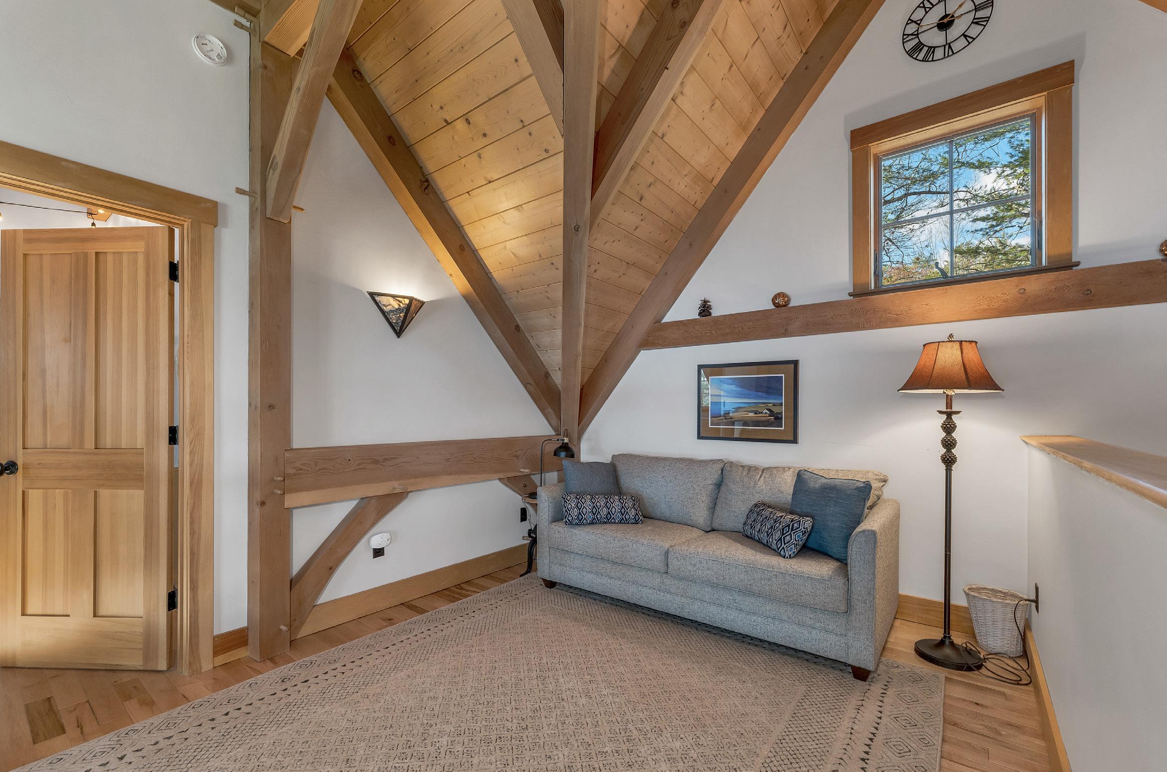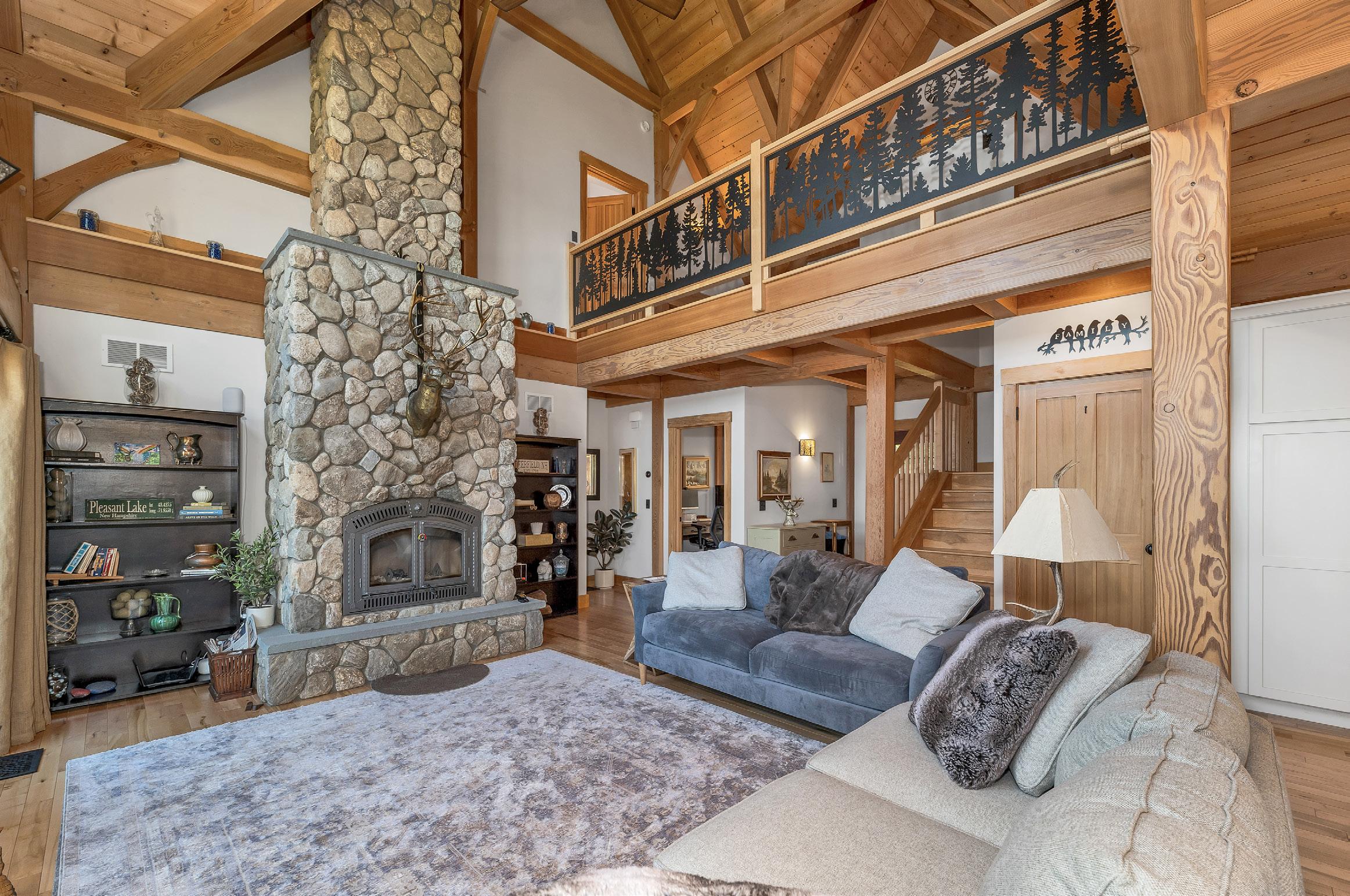 • Timber Frame construction of this home emphasizes the use of large wooden structural elements and create visually striking architecture.